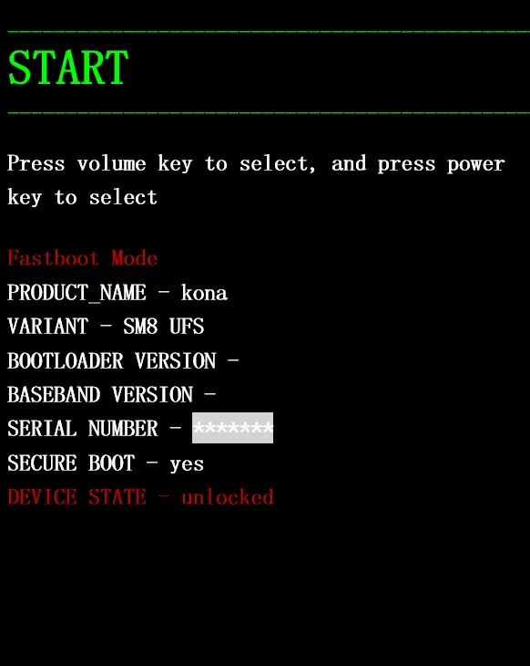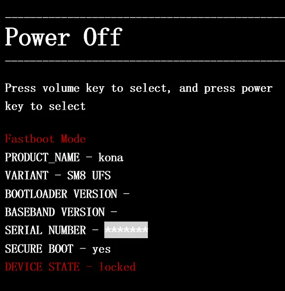 | 关机长按 | 电源 + 音量下 | I. 若 Bootloader 未解锁,则 Recovery 模式 II. 若 Bootloader 已解锁,则 Fastboot 模式 |